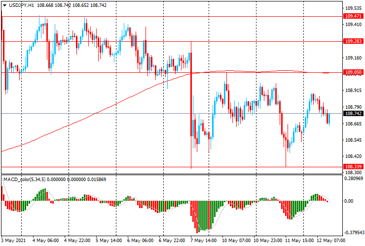 Альтернативный сценарий - если сопротивление Y109.05 (максимум 10 мая, МА (200) Н1) будет пробито, то пара может подняться к Y109.30-50 (максимумы 4-7 мая)