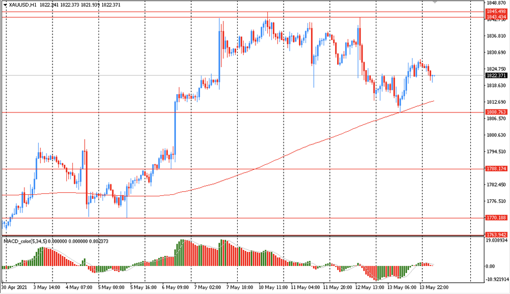 Основной сценарий продвижения пары — продолжение восходящего движения к $1843 (максимум 12 мая). Альтернативный сценарий подразумевает окончательное закрепление ниже MA 200 H1 с последующим снижением к $1770 (минимум 5 мая).