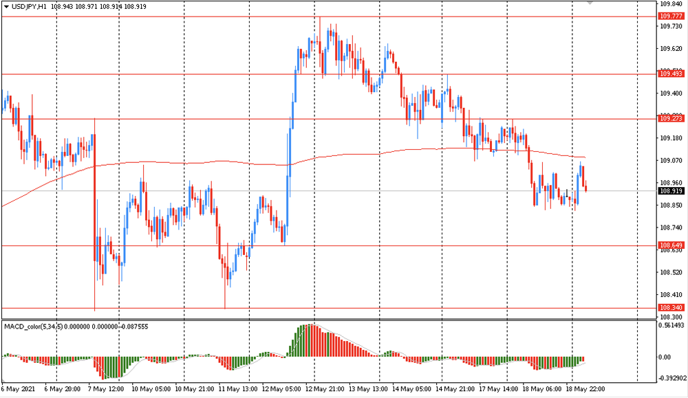 Основной сценарий продвижения пары — продолжение восходящего движения к Y109.25 (максимум 18 мая). Альтернативный сценарий предполагает закрепление ниже MA 200 H1, с последующим снижением к Y108.35 (минимум 11 мая).