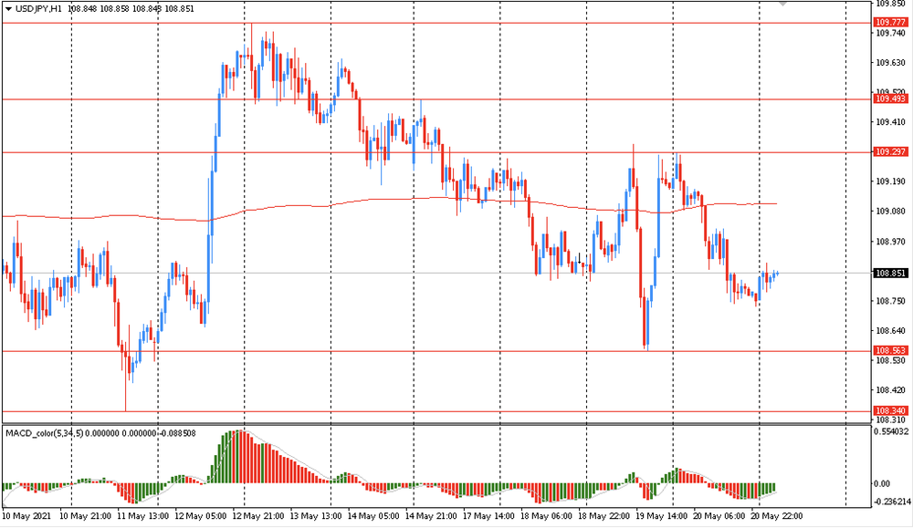 Основной сценарий продвижения пары — продолжение восходящего движения к Y109.30 (максимум 20 мая). Альтернативный сценарий предполагает закрепление ниже MA 200 H1, с последующим снижением к Y108.35 (минимум 11 мая).