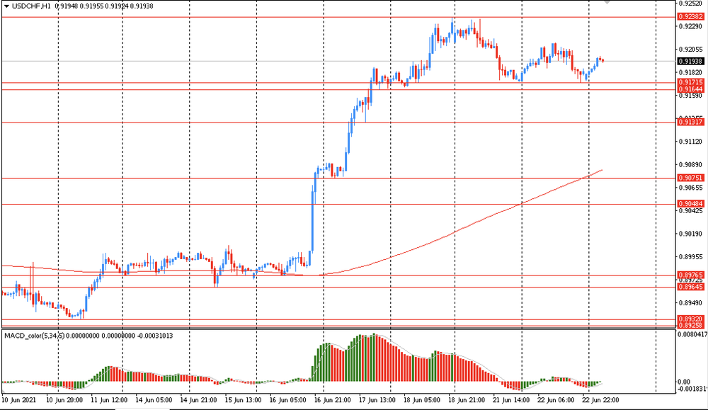 Основной сценарий продвижения пары — последующий рост к Chf0.9235 (максимум 18 июня). Альтернативный сценарий — закрепление ниже уровня MA 200 H1, с последующим снижением к Chf0.8925 (минимум 9 июня).