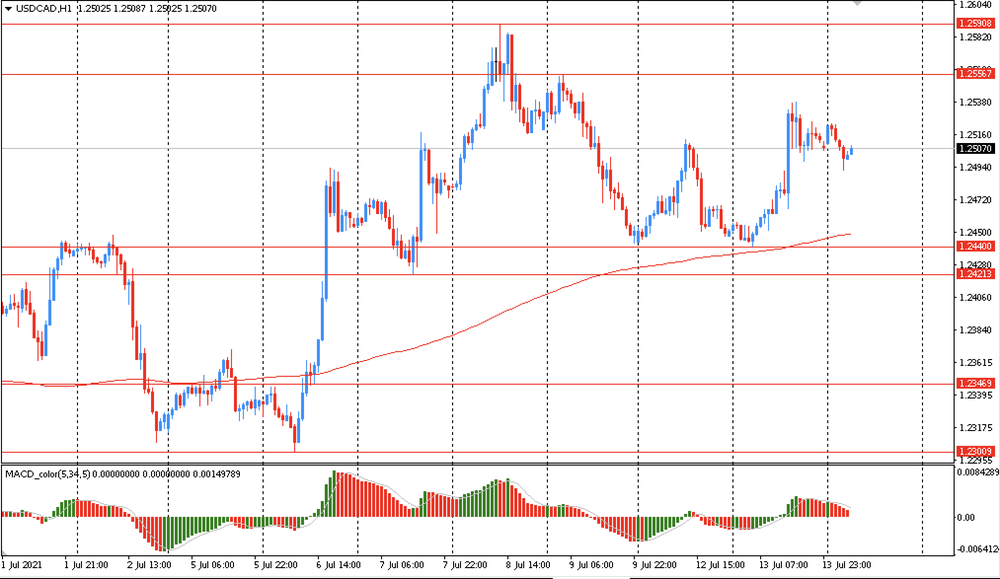 Основной сценарий продвижения пары — продолжение роста к С$1.2555 (максимум 9 июля). Альтернативный сценарий — закрепление ниже МА (200) Н1 с последующим снижением к С$1.2250 (минимум 23 июня).