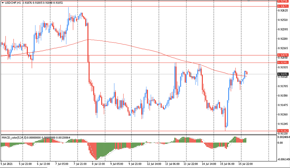 Основной сценарий продвижения пары — последующий рост к Chf0.9200 (максимум 13 июля). Альтернативный сценарий — окончательное закрепление ниже уровня MA 200 H1, с последующим снижением к Chf0.9120 (минимум 15 июля).