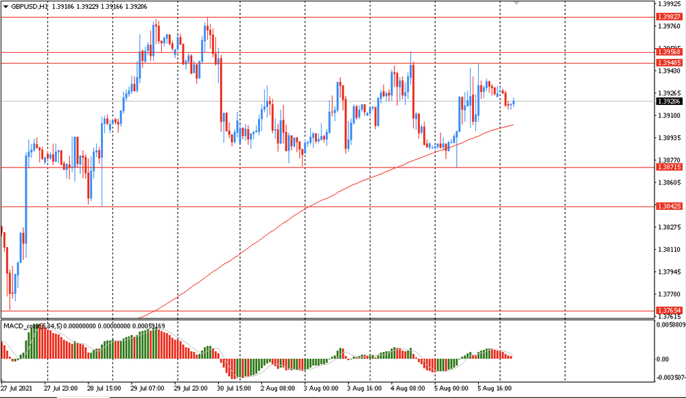 Основной сценарий продвижения пары — рост к $1.3945 (максимум 5 августа). Альтернативный сценарий подразумевает закрепление ниже уровня MA 200 H1 с последующим снижением к $1.3765 (минимум 27 июля).