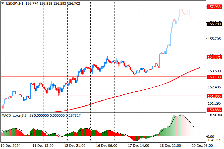 Сегодня пара USD/JPY торгуется в диапазоне 156.70-157.95 - около нового 5-месячного максимума. На часовом графике пара поднялась выше линии скользящей средней МА (200) Н1 (153.80) и на четырехчасовом графике выше МА (200) Н4 (153.15). Технически говоря, сопротивление 157.95 пока удержало USD/JPY от дальнейшего роста. Если этот уровень будет пробит, то пара может подняться к 158.80. Нижняя граница 153.15 представляет собой сильный уровень поддержки.