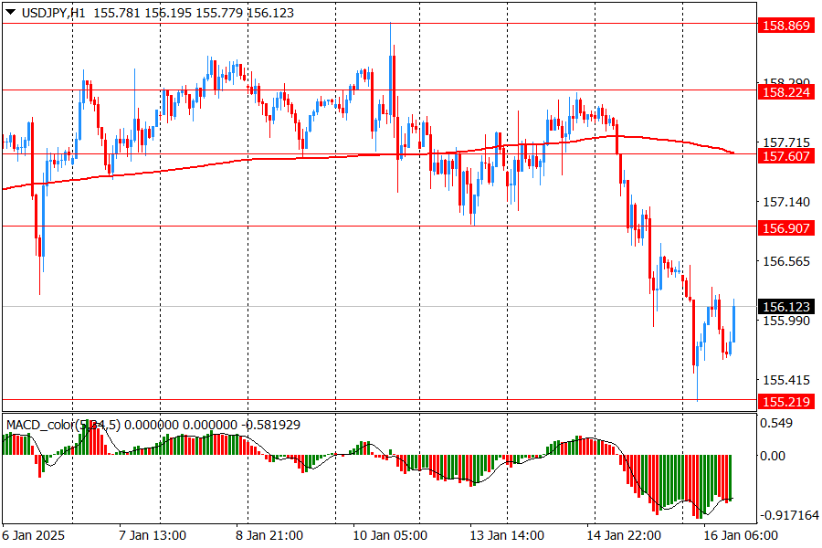 Основной сценарий продвижения пары предполагает рост к 156.90 (минимум 13 января) и МА (200) Н1 (157.60) и может быть рост к 158.20 (максимум 14 января).