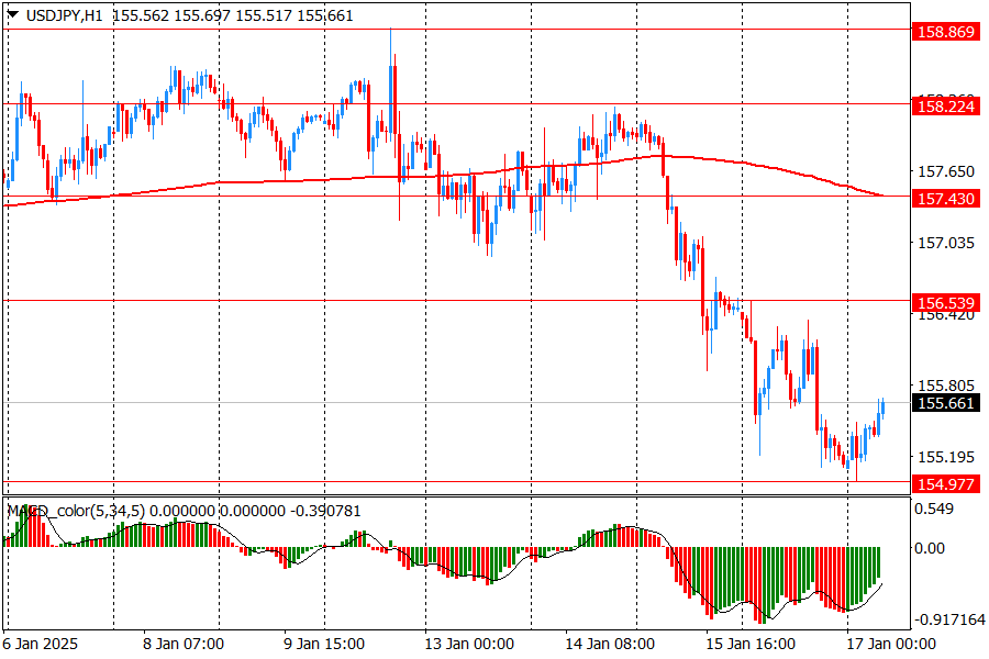 Уровни поддержки расположены на: 155.00, 154.45, 153.15