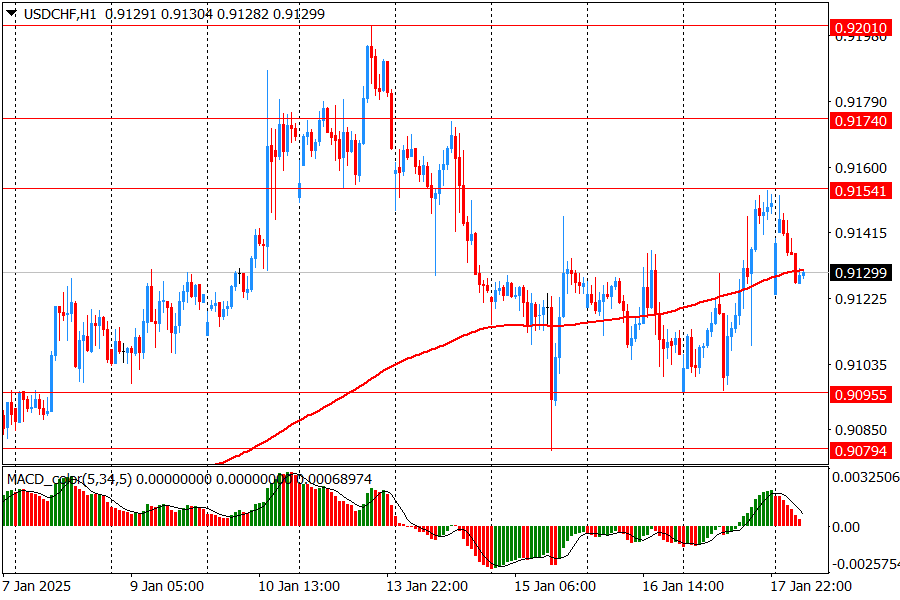 Основной сценарий продвижения пары предполагает прорыв сопротивления 0.9155 (максимум 17 января), рост к 0.9175 (максимум 14 января) и за тем, может быть, к 0.9200 (максимум 13 января).
