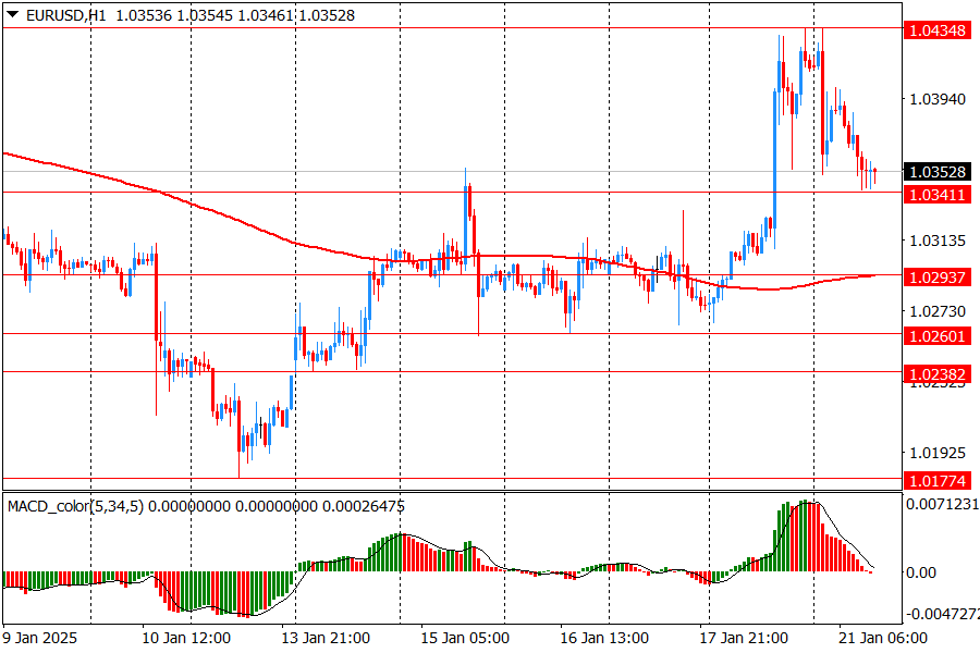 Основной сценарий продвижения пары предполагает прорыв сессионного минимума 1.0340 и МА (200) Н1 (1.0295) и может быть снижение к 1.0240-60 (минимумы 14-15 января).