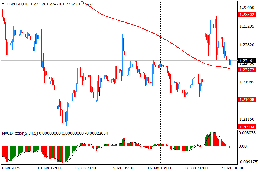 Основной сценарий продвижения пары предполагает прорыв поддержки МА (200) Н1 (1.2230) и может быть снижение к 1.2160 (минимум 17-20 января)