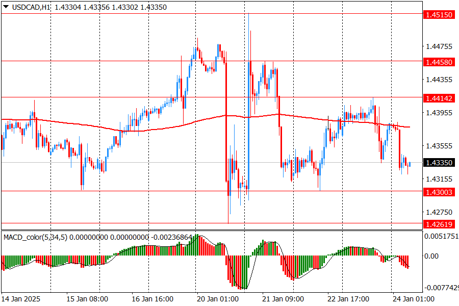 Основной сценарий продвижения пары предполагает прорыв сопротивления 1.4415 (максимум 23 января), рост к 1.4460 (максимум американской сессии 21 января) и за тем, может быть к 1.4515 (максимум 21 января).