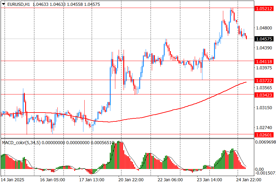 Альтернативный сценарий подразумевает прорыв поддержки 1.0410 (минимум 24 января) и может быть снижение к 1.0370 (минимум 23 января, МА (200) Н1)