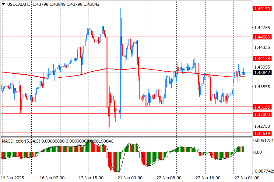 Основной сценарий продвижения пары предполагает прорыв сопротивления 1.4415 (максимум 23 января), рост к 1.4460 (максимум американской сессии 21 января) и за тем, может быть к 1.4515 (максимум 21 января).
