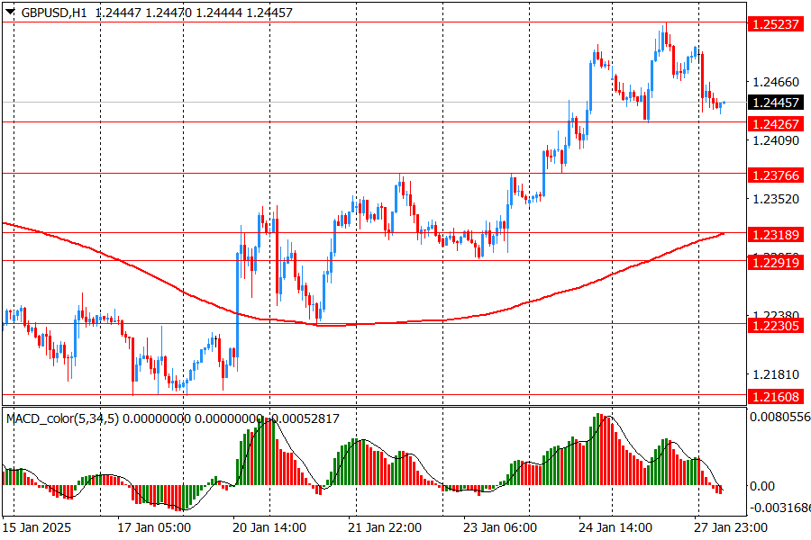 Альтернативный сценарий подразумевает прорыв поддержки 1.2425 (минимум 27 января) и может быть снижение к 1.2375 (максимум 22 января)