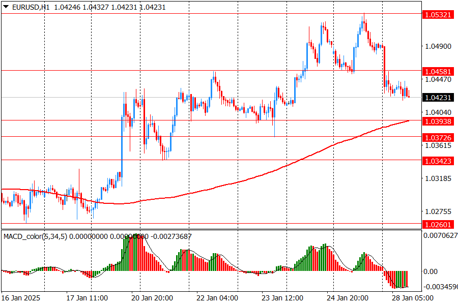 Альтернативный сценарий подразумевает прорыв поддержки 1.0370 (минимум 23 января) и может быть снижение к 1.0340 (минимум 21 января)