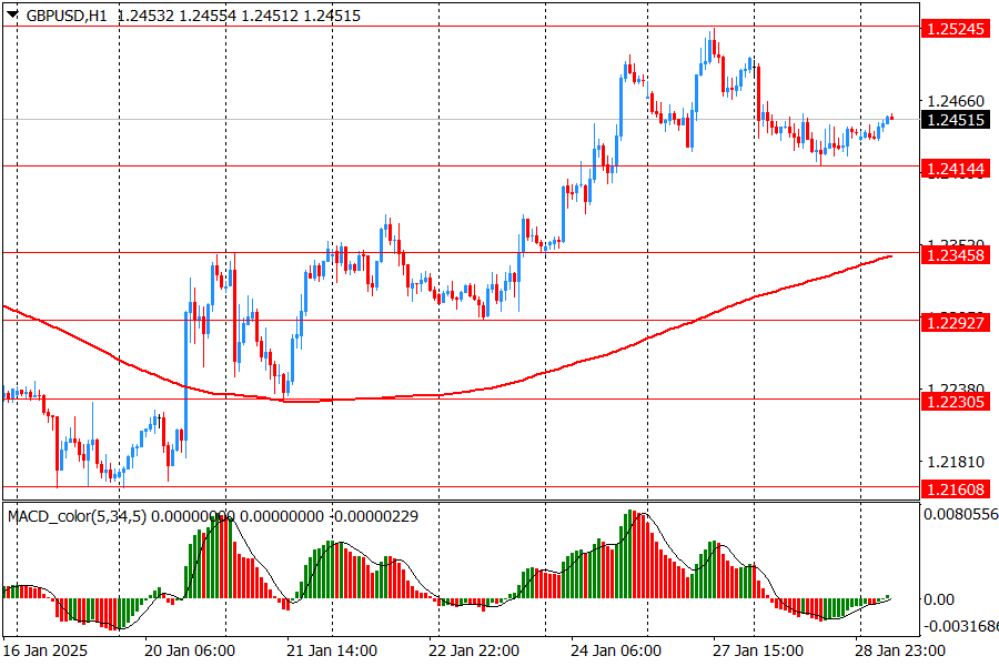 Альтернативный сценарий подразумевает прорыв поддержки 1.2415 (минимум 28 января) и может быть снижение к 1.2345 (максимум 24 января, МА (200) Н1)