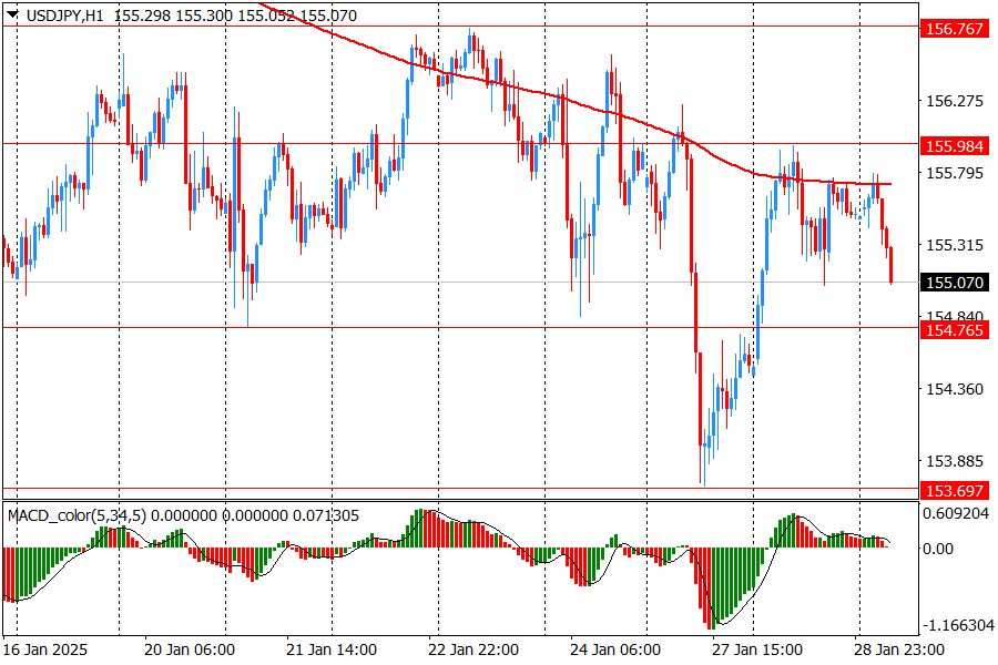 Уровни поддержки расположены на: 154.75, 153.70, 153.15