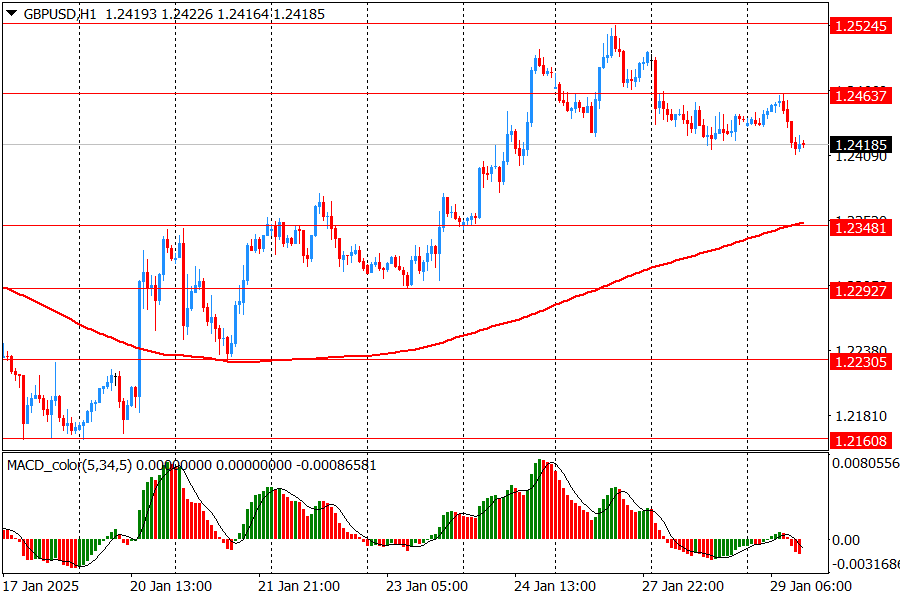 Основной сценарий продвижения пары предполагает прорыв сессионного максимума 1.2465 и может быть рост к 1.2525 (максимум 27 января)