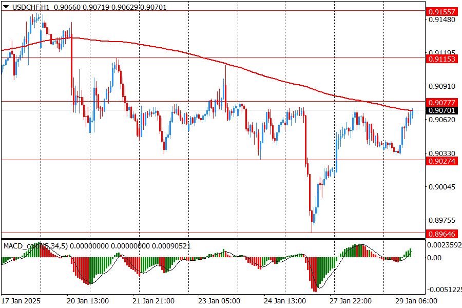 Основной сценарий продвижения пары предполагает снижение к 0.9030 (минимум 24 января, сессионный минимум) и за тем, может быть к 0.8965 (минимум 27 января)