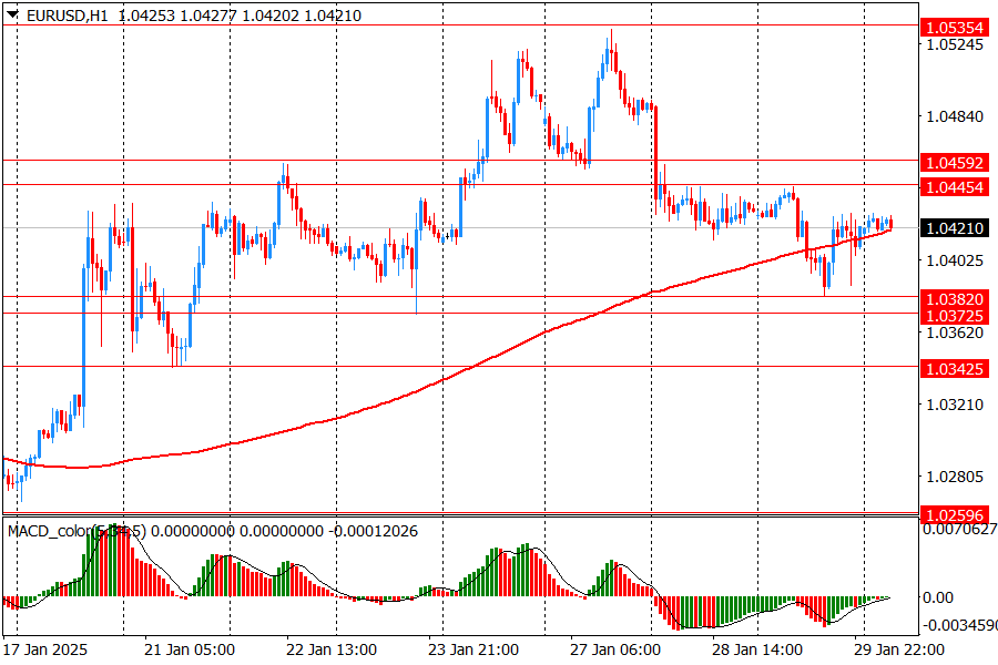 Альтернативный сценарий подразумевает прорыв поддержки 1.0370-80 (минимумы 23 и 29 января) и может быть снижение к 1.0340 (минимум 21 января)