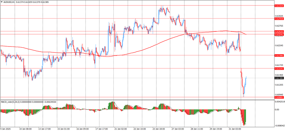 Альтернативный сценарий продвижения пары подразумевает прорыв сессионного максимума 0.6165 (минимум 17 января), рост к 0.6200 (минимум 30 января) и за тем, может быть, к 0.6255-60 (максимум 31 января, МА (200) Н1)