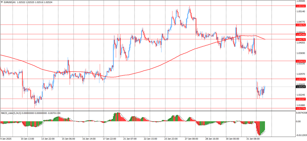 Основной сценарий продвижения пары все еще предполагает прорыв сессионного минимума 1.0210 и может быть снижение к 1.0180 (минимум 13 января). Альтернативный сценарий подразумевает прорыв сессионного максимума 1.0280, рост к 1.0340 (минимум 21 января) и за тем, может быть, к 1.0420-35 (максимум 31 января, МА (200) Н1)