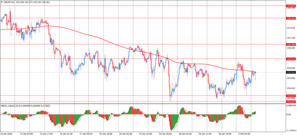 Альтернативный сценарий предполагает прорыв сопротивления 156.00 (максимум 28 января) и может быть рост к 156.75 (максимум 23 января)