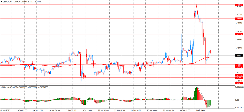 Вчера пара USD/CAD в основном снижалась с 22-летнего максимума 1.4790 до уровня закрытия 1.4385. Сегодня пара начала торги небольшим ростом к 1.4505. На часовом графике пара тестирует линию скользящей средней МА (200) Н1 (1.4440) и на четырехчасовом графике MA 200 H4 (1.4395). Исходя из вышесказанного, вероятно, стоит пока придерживаться северного направления в торговле и пока пара не закрепилась ниже MA 200 H1, необходимо искать точки входа на покупку.