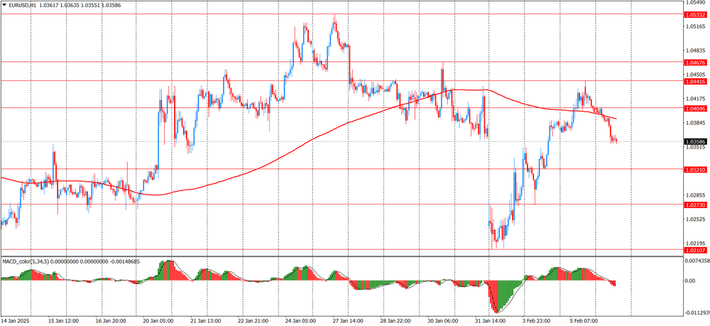 Альтернативный сценарий подразумевает прорыв поддержки 1.0320 (минимум американской сессии 4 февраля) и может быть снижение к 1.0275 (минимум 4 февраля)