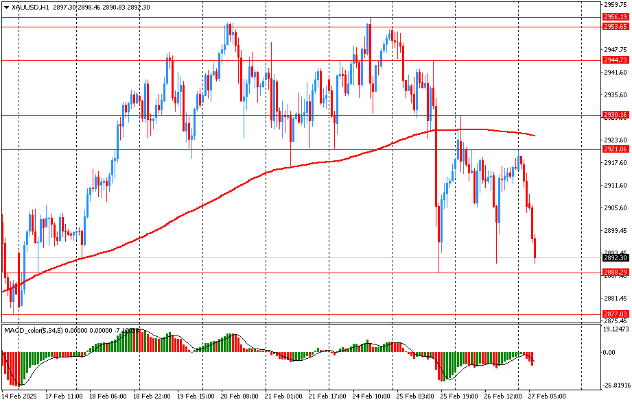 Вчера пара XAU/USD торговалась разнонаправлено в диапазоне 2890-2930 и закрыла день без существенных изменений. Сегодня золото резко упало, опустившись к отметке 2890. На часовом графике XAU/USD все еще тестирует на прочность поддержку - линию скользящей средней МА (200) Н1 (2924). На четырехчасовом графике золото пока остается выше линии MA 200 H4. Исходя из вышесказанного, вероятно, стоит придерживаться северного направления в торговле и пока золото остается выше MA 200 H1, необходимо искать точки входа на покупку на окончание коррекции.
