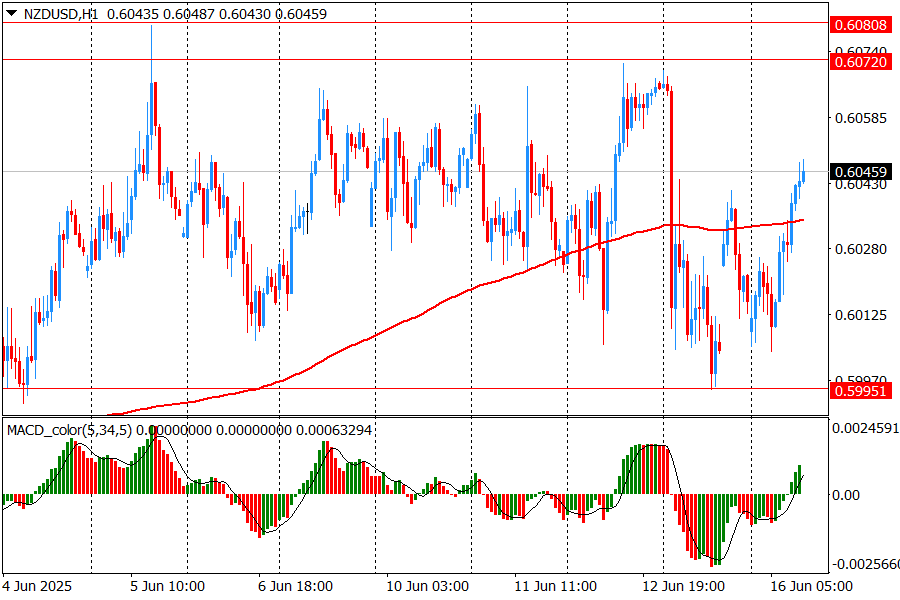 На часовом графике пара NZD/USD демонстрирует признаки восстановления после отскока от поддержки на уровне 0.5995. Цена преодолела скользящую среднюю МА (200) Н1, расположенную вблизи 0.6030, что может сигнализировать о смене краткосрочного тренда на восходящий. Текущая котировка закрепляется выше этого уровня, подтверждая намерение покупателей продолжить рост. Индикатор MACD перешёл в положительную зону, а гистограмма устойчиво растёт, указывая на наращивание бычьего импульса. Ближайшее сопротивление находится на отметке 0.6070, далее — ключевой уровень 0.6080. Поддержка сместилась к области 0.6030 и далее к 0.5995. Общая техническая картина указывает на восстановление бычьих настроений с потенциалом роста в направлении 0.6070 при условии удержания цены выше 200 SMA.