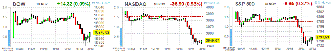 С экономических данных, которые повлияли на ход торгов, можно выделить отчет от Национальной ассоциацией строителей жилья (NAHB). Торгово-промышленная группа заявила, что ее показатель состояния жилищного рынка составил 54 в ноябре, оказавшись в соответствии с пересмотренным вниз показателем за октябрь. Индекс от NAHB является мерой доверия на рынке новопостроенных домов для одной семьи. Результаты оказались ниже ожиданий. Экономисты прогнозировали, что индекс вырастет до 56 по сравнению с 55, о которых первоначально сообщалось в октябре. Вышедшие данные положительно сказалось на динамике основных индексов, так как плохие макроэкономические новости стимулируют продолжение программы количественного смягчения (QE).