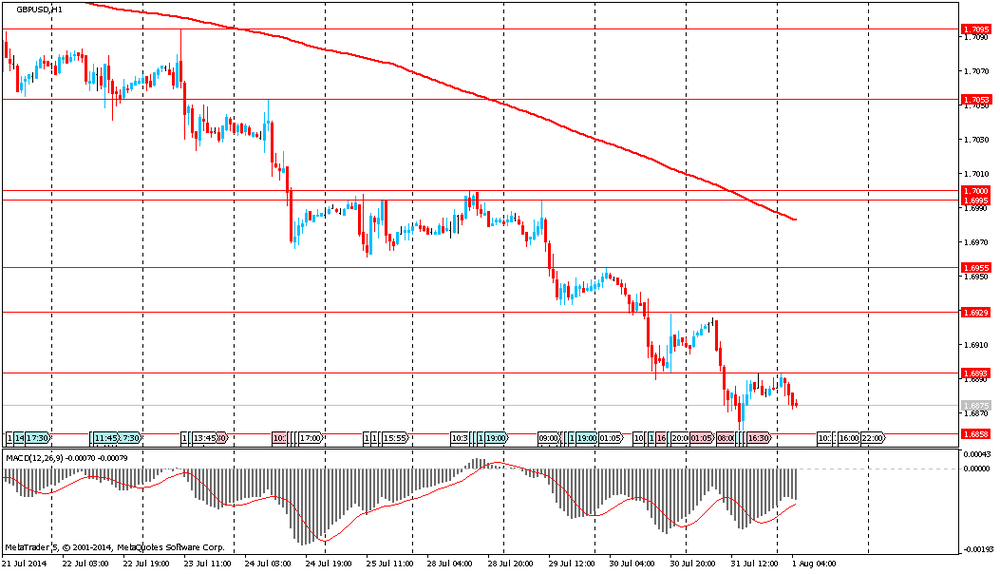 В 07:30 GMT Швейцария выпустит индекс PMI от SVME за июль. Индекс PMI для производственной сферы выйдет в 07:50 GMT во Франции, в 07:55 в Германии, в 08:00 GMT в еврозоне и в 08:30 GMT в Британии. США в 12:30 GMT опубликует уровень безработицы, изменение числа занятых в несельскохозяйственном секторе, изменение числа занятых в частном секторе экономики, изменение числа занятых в производственном секторе экономики, изменение средней почасовой оплаты труда, долю экономически активного населения, суммарный пересмотр занятости за 2 месяца за июль, основной индекс расходов на личное потребление, изменение уровня расходов населения, индекс-дефлятор личных потребительских расходов за июнь, в 13:55 GMT - индикатор уверенности потребителей от университета Мичигана за июль, в 14:00 GMT - производственный индекс ISM за июль.