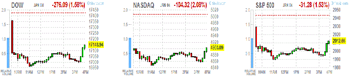 Основные американские фондовые индексы потеряли более 1,5% в понедельник - первый торговый день года - после того, как слабые китайские экономические данные усилили опасения замедления роста мировой экономики.