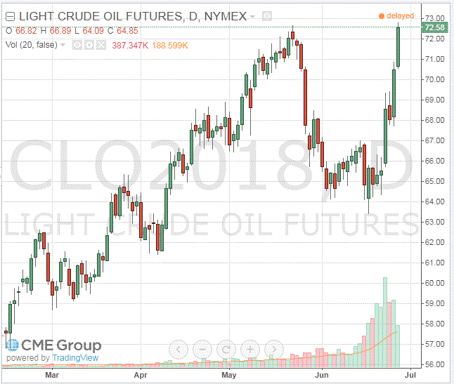 Кроме того, поддержку ценам оказывал риск нарушения поставок из Африки и Ближнего Востока.. В Ливии борьба за власть между международно признанным правительством и повстанцами оставила неясным, кто будет заниматься экспортом нефти страны. Будущее экспорта иранской нефти также туманно. Соединенные Штаты сказали всем странам прекратить импорт иранской нефти с ноября, поскольку администрация Трампа наращивает давление на исламскую Республику.
