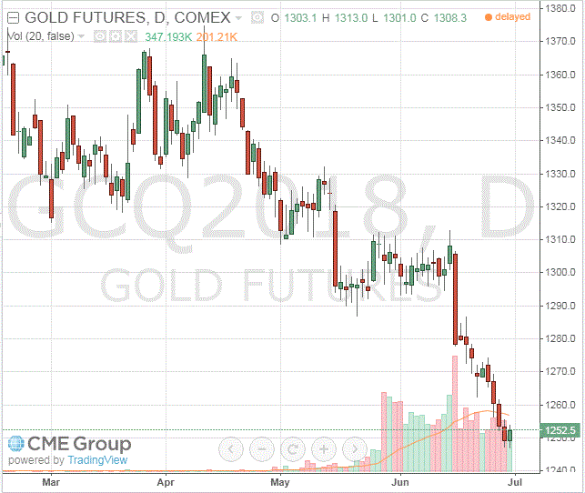 Стоимость августовского фьючерса на золото на COMEX выросла до $1252,50 за унцию.