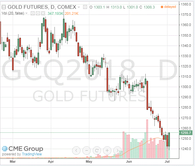 В фокусе внимания также остается торговая напряженность между Китаем и США. Соединенные Штаты намерены установить тарифы на $34 млрд. китайских товаров 6 июля. Торговая палата США в понедельник осудила президента США Трампа, занимающегося глобальными торговыми спорами, выпустив доклад, в котором утверждалось, что тарифы, введенные Вашингтоном, и возмездие со стороны его партнеров будут негативно сказываться на экономике США. Золото может вырасти во времена неопределенности, так как оно рассматривается как безопасное место для парковки активов.