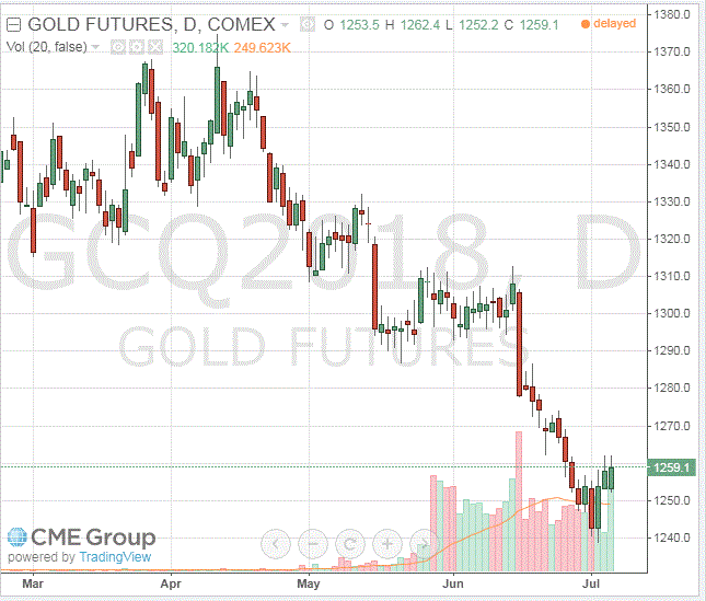 Стоимость августовского фьючерса на золото на COMEX составляет $1259,10 за унцию.