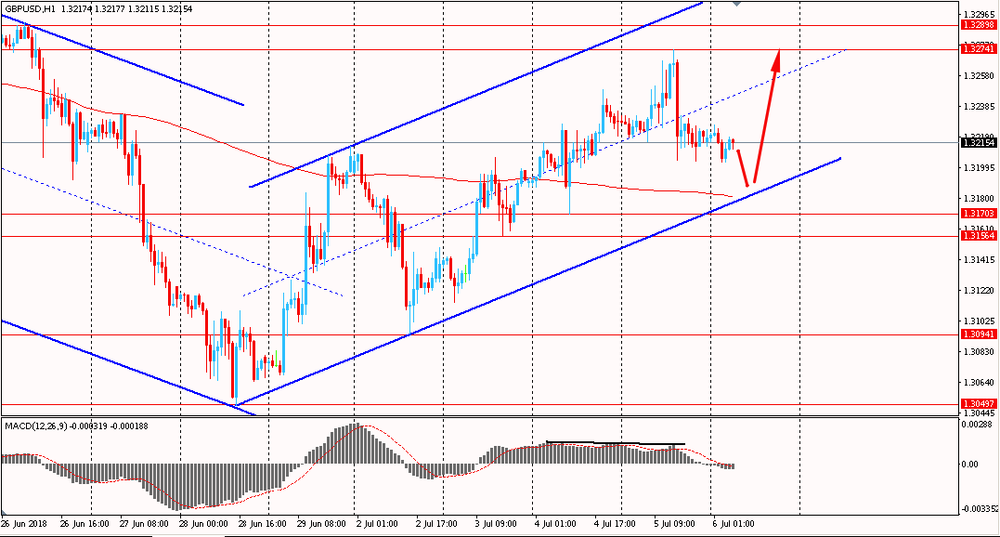 Пара GBP/USD сегодня утром торговалась в узком диапазоне $1.3220-25, находясь около вчерашних минимумов. В четверг пара, поддерживаемая образованием медвежьей дивергенцией, снижалась во второй половине дня и закрыла день на отрицательной территории. На данный момент фунт приближается к наклонной линии общего восходящего канала от 28 июня. Однако, общий тренд по паре остается восходящим, т.к. пара находится выше линии скользящей средней MA 200 H1 в общем восходящем канале под контролем быков.