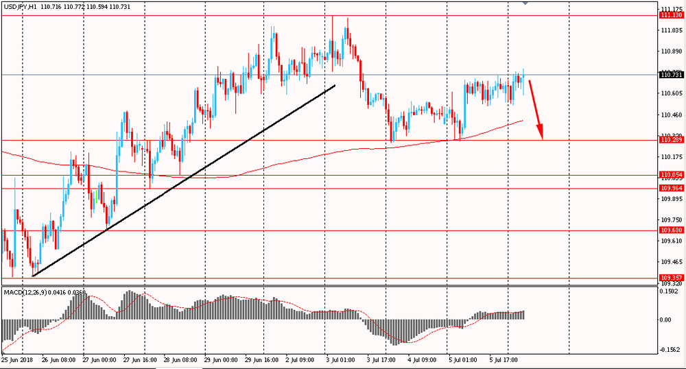 Сегодня утром пара USD/JPY немного выросла к Y110.75, продолжая вчерашнее восстановление. В четверг пара, оттолкнувшись от линии скользящей средней MA 200 H1, выросла и закрыла день с повышением. На данный момент USD/JPY корректируется после сильного нисходящего импульса от 3 июля. Стоит отметить, что ранее пара сумела выйти из восходящего тренда и закрепиться ниже наклонной линии поддержки от 26 июня. Если медведям удастся закрепиться ниже MA 200 H1, они окончательно завладеют ситуацией.