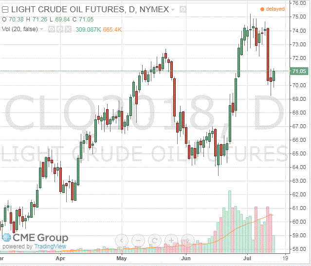 Напомним, нефть Brent приблизилась к $80 в конце июня и начале июля из-за сбоев в поставках в Ливии и Венесуэле и опасений, что Соединенные Штаты будут оказывать давление на всех покупателей иранской нефти, чтобы сократить импорт до нуля с ноября. Но цены снижались в последние дни, так как член ОПЕК Ливия вновь открыла свои порты на востоке, а госсекретарь США Майк Помпео сказал, что Вашингтон рассмотрит просьбы некоторых стран об освобождении от санкций, которые должны вступить в силу в ноябре, чтобы помешать Ирану экспортировать нефть.