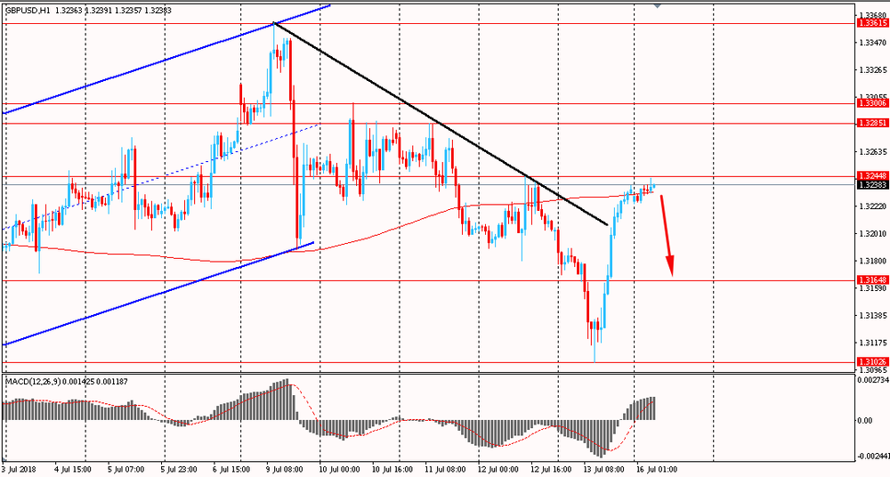 Пара GBP/USD сегодня утром торговалась в диапазоне $1.3225-40. В пятницу пара падала в первой половине дня, однако, коснулась линии поддержки $1.3105 и во второй половине дня резко выросла, закрыв день на положительной территории. На данный момент пара тестирует линию сопротивления скользящей средней MA 200 H1, а в пятницу евро пробило линию наклонного сопротивления от 9 июля. Несмотря на коррекцию, медведи удерживают инициативу и будут пытаться вернуться в нисходящий канал.