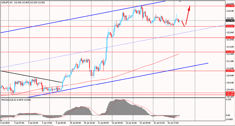 Сегодня утром пара USD/JPY выросла к Y112.55. Вчера пара не показала каких-либо существенных изменений и закрыла день около цен открытия дня. Уже третий день USD/JPY находится в консолидации и оттолкнувшись от сопротивления глобального восходящего тренда понемногу снижается. На данный момент пара приближается к срединной линии общего тренда, при этом, глобально пара находится существенно выше линии скользящей средней MA 200 H1. В данной ситуации наиболее правильным будет искать новые позиции на покупку, придерживаясь направления общей тенденции.