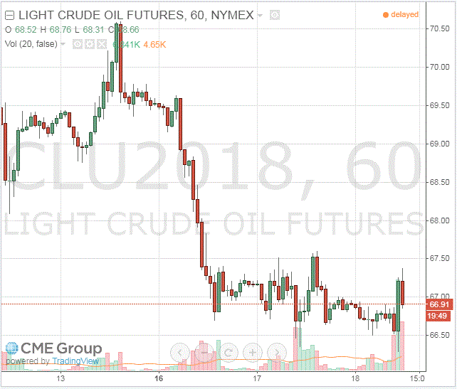 Стоимость сентябрьских фьючерсов на американскую легкую нефть марки WTI (Light Sweet Crude Oil) упала до 66,91 доллара за баррель на Нью-йоркской товарно-сырьевой бирже.