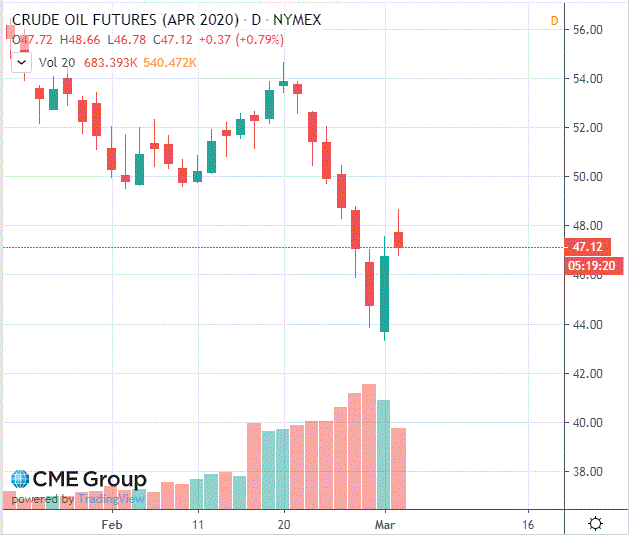 Brent и WTI несколько восстановились за последние два дня после снижения более чем на 20% от своего январского пика на признаках того, что распространение коронавируса негативно повлияло на спрос на топливо.