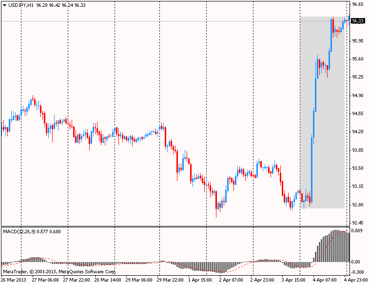 Курс японской валюты резко упал против всех основных валют после того, как Банк Японии объявил о своем решении сохранить базовую процентную ставку на уровне 0—0,1% годовых и расширить программу по выкупу активов с рынка на 50 трлн иен — до 151 трлн иен в год (1,62 трлн долларов). Кроме того, регулятор намерен начать покупать гособлигации, срок погашения которых превышает установленный лимит в три года. Теперь лимит расширен до семи лет. Банк Японии назвал новую схему смягчения "Количественным и качественным денежно-кредитным смягчением". ЦБ объявил о своем намерении достичь целевого уровня инфляции 2% примерно за два года. Решение было принято большинством голосов, 8 против 1. Против выступил Киути, который не согласился с решением принять схему количественного, качественного смягчения. Стоит отметить, что встреча была первой для нового главы финрегулятора Куроды, который вступил в свою должность в прошлом месяце.