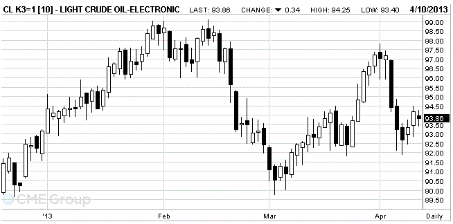 Стоимость майских фьючерсов на американскую легкую нефть марки WTI (Light Sweet Crude Oil) снизилась до 93,86 доллара за баррель.