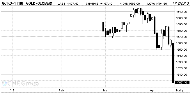 Цены на золото снизились, опустившись при этом до самых низких уровней с конца 2011 года на признаках того, что инвесторы выступают в пользу доллара и акций, поскольку мировая экономика восстанавливается. Кроме того, глава Европейского центрального банка Марио Драги заявил сегодня, что Кипр может продавать свои золотые запасы для покрытия возможных убытков от чрезвычайных кредитов, но решение будет принято центральным банком страны.