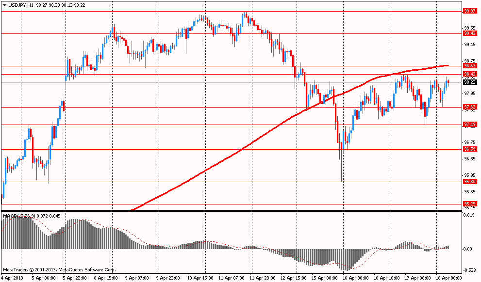 USD/JPY: в ходе азиатской сессии пара торговалась в диапазоне Y97.60-Y98.35.