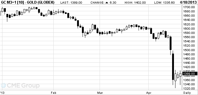 Цены на золото восстанавливаются после почти 3-процентного падения в начале сессии, вызванного спадом на других рынках, перспективой замедления инфляции и опасениями продаж золота центробанками.